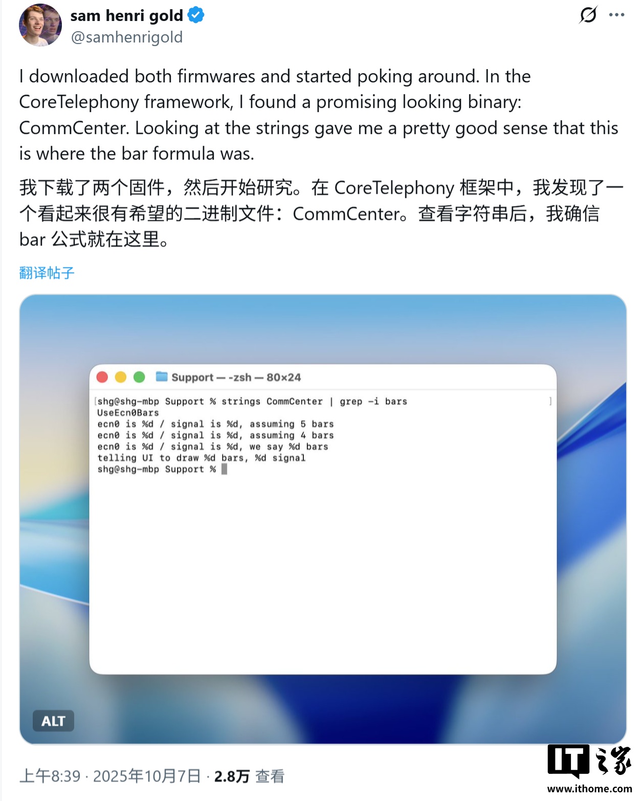 IT之家 10 月 9 日消息通联随配,科技媒体 9to5Mac 昨日(10 月 8 日)发布博文,报道称困扰业界 15 年之久的苹果 iPhone 4“天线门”事件谜底近日揭晓。软件工程师萨姆・亨利・戈尔德发现,当年导致信号格急剧下降的根本原因并非硬件缺陷,而是一个软件算法错误。