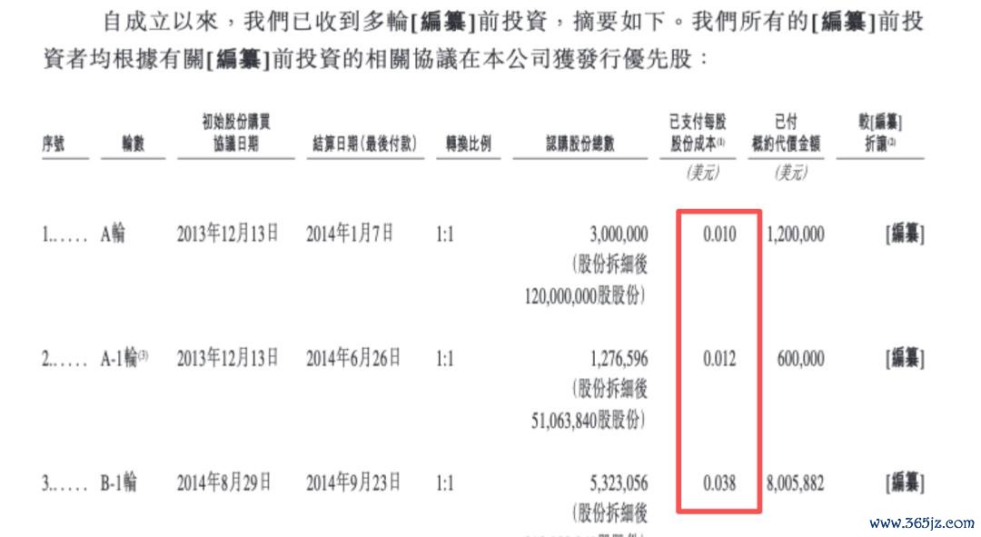 根据群核科技招股书,有机构至今入股成本摊薄仅约0.01美元/股—0.012美元/股,约合0.078港元/股—0.094港元/股,按收盘价计算,浮盈约398倍—480倍。