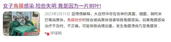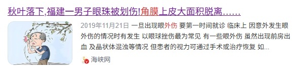 金秋时节,不管是“捡秋”还是“秋收”,树叶、农作物的枝叶等都可能划伤眼睛,因此在进行这些活动时,植物性角膜外伤也是一个不可忽视的风险。