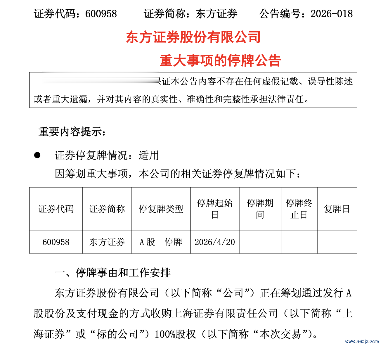 4月19日,东方证券(600958)发布公告称,公司正在筹划通过发行A股股份及支付现金的方式收购上海证券100%股权,A股股票将于4月20日开市起停牌,预计停牌时间不超过10个交易日,这是继国泰君安与海通证券合并后,上海国资券商板块的又一大整合动作。