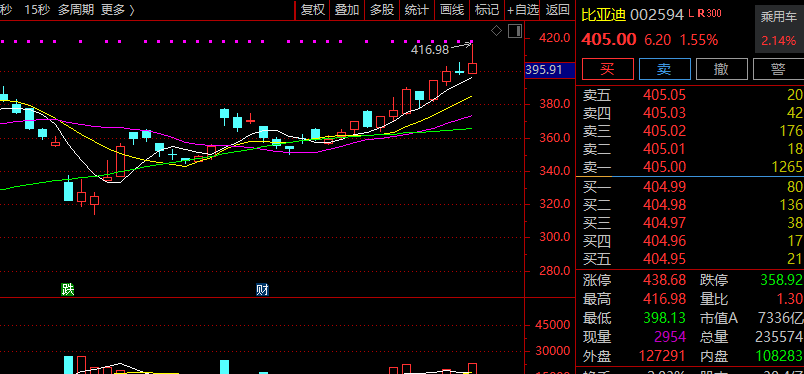 近日云上速配,比亚迪股价连续上涨,截至周五收盘,比亚迪A股收于405元/股。