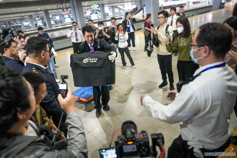 2025年4月10日,上海试点高铁宠物托运服务。12点26分,一只狸花猫在众人护送下,搭乘G134次列车前往南京。
